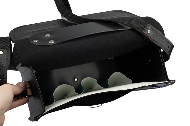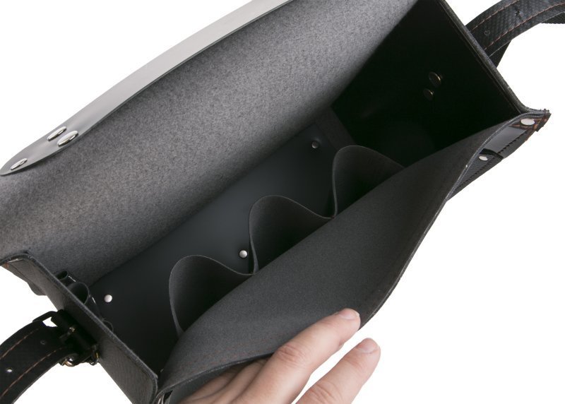 Brašna řemeslnická ze syntetické usně, s vyztuženým dnem, boky a vnitřni kapsou. Má dvě řady kapsiček na nářadí a popruh přes rameno. Prvky: držadlo, popruh přes rameno s nárameníkem, pevně vyztužená. Vnitřní konstrukce: 1 kapsa na předním díle na dokumenty, 2 řady přihrádek na nářadí. Výztuhy: dno, hřbet, boky. Hlavní materiál: přírodní hovězinová useň s ochranným lakem.