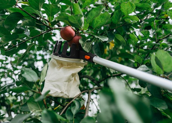 - tvar zajišťuje, že ovoce spadne přímo do sáčku