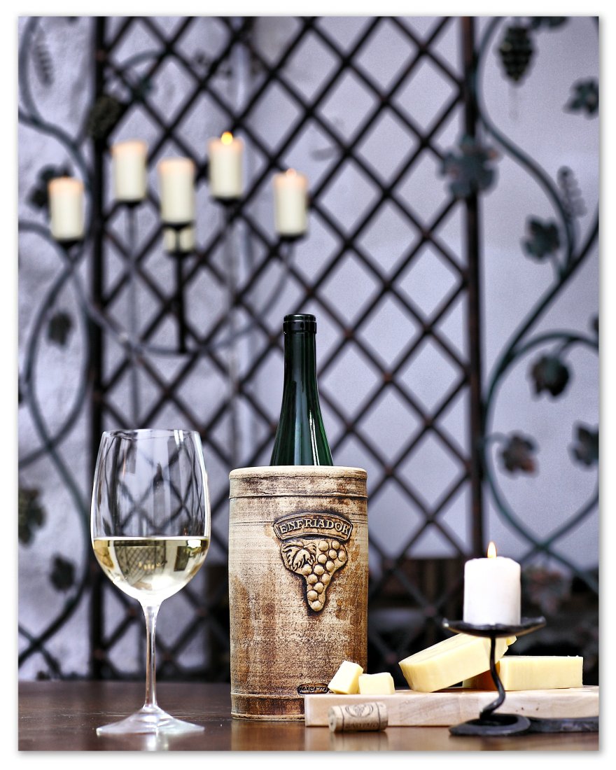 Chladič na víno kameninový ES - ruční výrobaSe Španělským nápisem Chladič na straně.Španělská varianta chladiče s nápisem Enfriador. Použití chladiče je velmi jednoduché. Chladič napusťte studenou vodou a hned ji vylijte. Chladič neokapávejte, nijak nevysušujte a neprodleně vložte do mrazničky. Chladič je připraven k použití po 10 až 20 minutách. Chladič vyjměte z mrazničky a vložte do něj vychlazenou láhev vína. Při pokojové teplotě udrží optimální teplotu vína více jak hodinu.Unikátnost našeho chladiče tkví v použitém materiálu a výhradně ručním zpracování školeným mistrem v oboru keramiky, díky čemu je každý kus originál a neexistují dva stejně vypadající chladiče! Náš kameninový chladič je nejen funkčním, ale především designovým doplňkem rustikálního i moderního interiéru.Jako materiál je použita kamenina, známá pro své výborné vlastnosti již od 4. století. Kamenina je velmi pevná, trvanlivá a nenasákavá a svými vlastnostmi je velmi podobná porcelánu. Nejdůležitější vlastností je však její schopnost udržet chlad nebo teplo dle potřeby a použití. Kamenina je také oblíbená pro její zemitou jednoduchost.