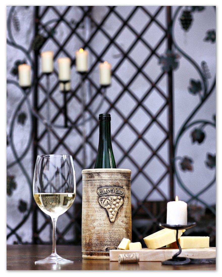 Chladič na víno Kameninový FR - ruční výrobaS Francouzkým nápisem Chladič na straně.Francouzská varianta chladiče s nápisem Glacière. Použití chladiče je velmi jednoduché. Chladič napusťte studenou vodou a hned ji vylijte. Chladič neokapávejte, nijak nevysušujte a neprodleně vložte do mrazničky. Chladič je připraven k použití po 10 až 20 minutách. Chladič vyjměte z mrazničky a vložte do něj vychlazenou láhev vína. Při pokojové teplotě udrží optimální teplotu vína více jak hodinu.Unikátnost našeho chladiče tkví v použitém materiálu a výhradně ručním zpracování školeným mistrem v oboru keramiky, díky čemu je každý kus originál a neexistují dva stejně vypadající chladiče! Náš kameninový chladič je nejen funkčním, ale především designovým doplňkem rustikálního i moderního interiéru.Jako materiál je použita kamenina, známá pro své výborné vlastnosti již od 4. století. Kamenina je velmi pevná, trvanlivá a nenasákavá a svými vlastnostmi je velmi podobná porcelánu. Nejdůležitější vlastností je však její schopnost udržet chlad nebo teplo dle potřeby a použití. Kamenina je také oblíbená pro její zemitou jednoduchost.