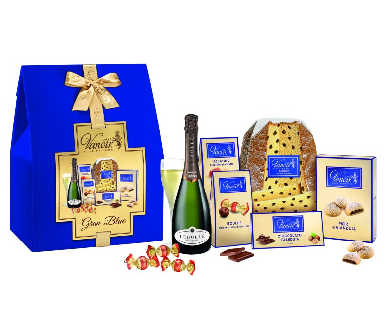 Koš "Gran Blue" od Il Rovere představuje kombinaci elegance a italské sladké i šumivé gurmánské tradice. Tento exkluzivní dárkový koš v sametově modré krabičce s atlasovou mašlí nabízí výběr vybraných produktů Vanoir, které společně vytvářejí nezapomenutelný zážitek pro milovníky sladkostí a vína.