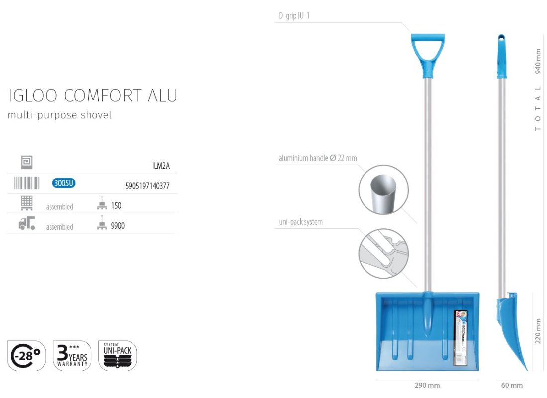 Dětská lopata na sníh IGLOO COMFORT ALU světle modrá