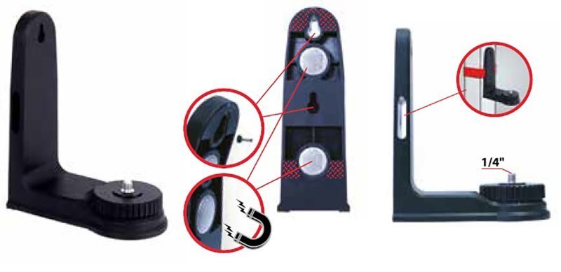 univerzální držák se závitem 1/4" pro lasery varianty použití - viz obrázek