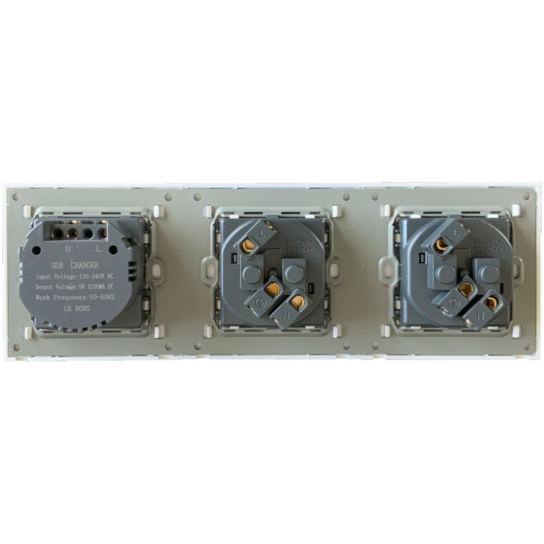 Skleněný rámeček s dvěma plastovými zásuvkami a dvěma USB vstupy - klasické