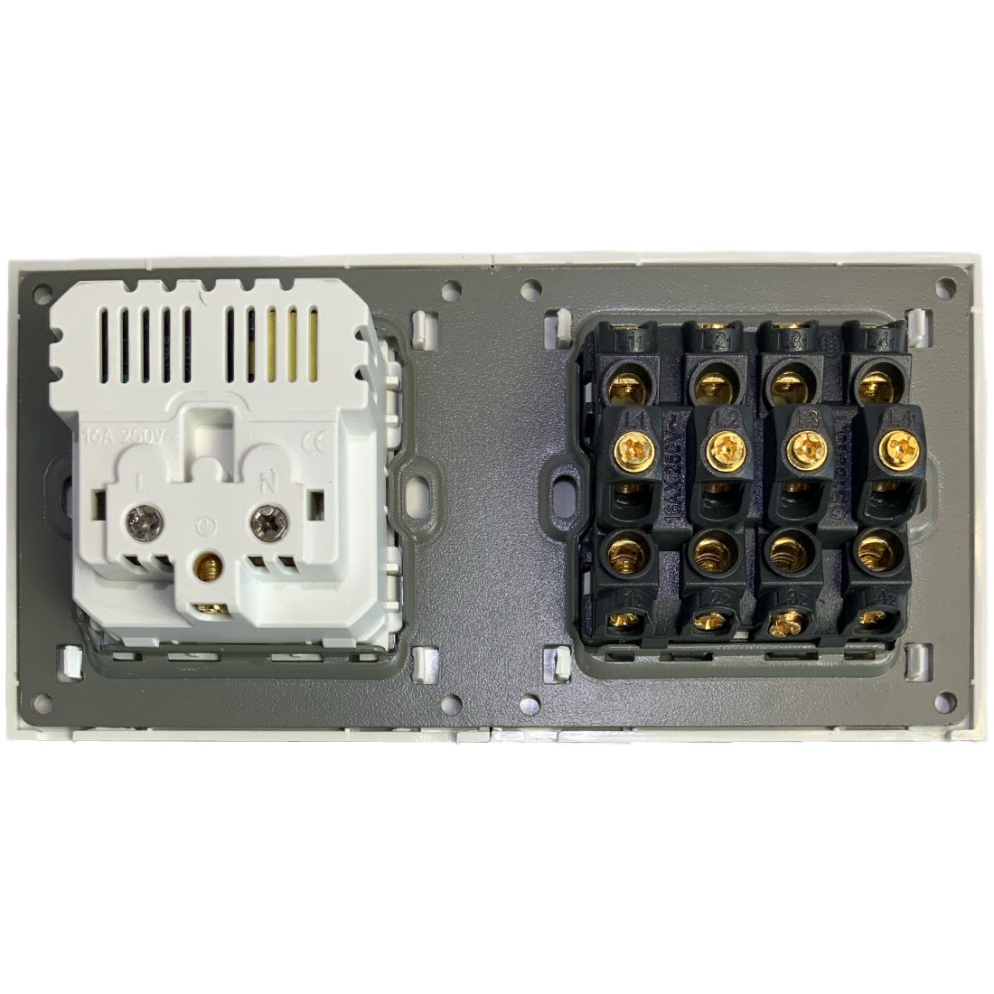 Skleněný rámeček s plastovým vypínačem, zásuvkou a dvěma USB vstupy - schodišťový / křížový
