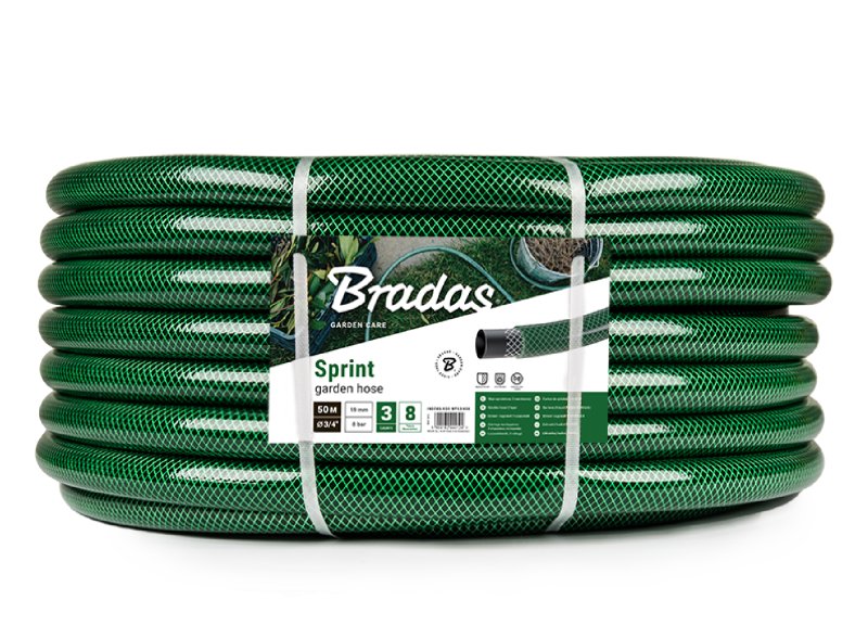 Hadice SPRINT - 3 vrstvá, vyztužená zahradní hadice z měkčeného PVC. I vrstva - černá PVC Vnitřní vrstva proti UV záření, proti řasám II vrstva - pletená syntetická vlákna III vrstva - vnější vrstva, transparentní zelená vyrobena z měkčeného PVCTlak - max.8 barZáruka 8 let.