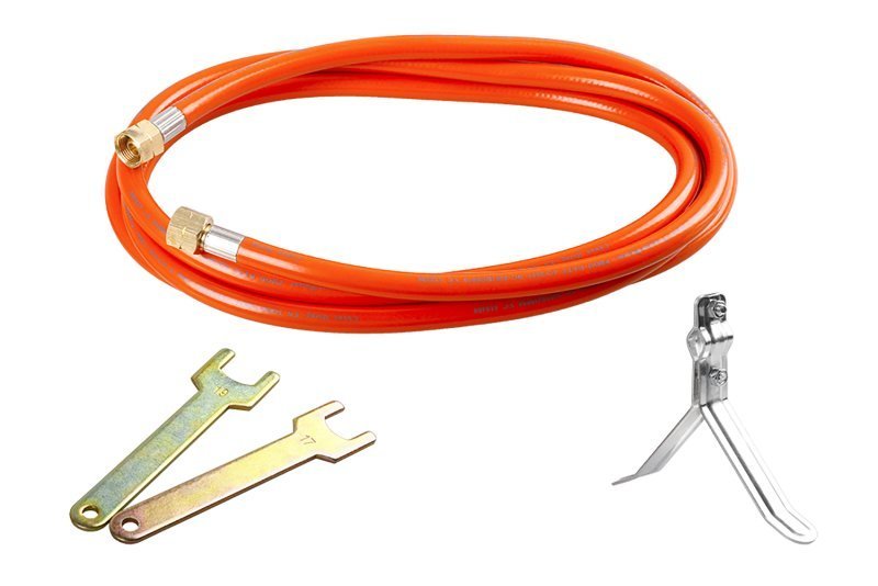 hořák FESTA na propan-butan (LPG), sada s hadicí 3 m hadice s certifikací 55 x 850 mm, maximální výkon 35 kW ergonomická neklouzavá rukojeť, regulace průtoku, spoušť s hladkým chodem a přesným ovládáním výkonu součástí také opěra pro bezpečné, přechodné odložení hořícího hořáku zakončení - trn nebo závit, vhodné hadice 5 m - 69911, 10 m - 69912 napojení přes regulátory 69923, 69920, 69907 na lahve 5, 10, 33 kg