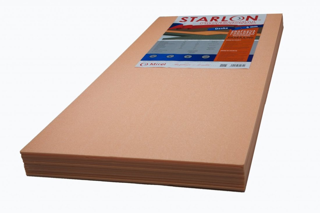 Izolace a podložka STARLON tl. 6mmPodkladový materiál pod laminátové, dřevěné a ostatní podlahové krytinyExtrudovaný polystyren s uzavřenou buněčnou strukturou: - Tepelně a zvukově izoluje - Tlumí kročejový hluk- Vyrovnává drobné nerovnosti - Nenasákavý - Hygienicky a ekologicky nezávadný Bez zápachu Popis Termoakustická izolační podložka z extrudovaného polystyrenu určená pod laminátové, dřevěné a ostatní podlahové krytiny. Vyznačuje se schopností tepelně a zvukově izolovat, pohlcovat drobné nerovnosti povrchu, velkou odolností proti zatížení a vysokou hodnotou redukce kročejového hluku.Cena je udána za 1ks starlonu (0,5m2).Minimální odběr je balení které obsahuje 10ks Starlonu 1m x 0,5mPři vložení do košíku zadávejte počet balení ne kusů.