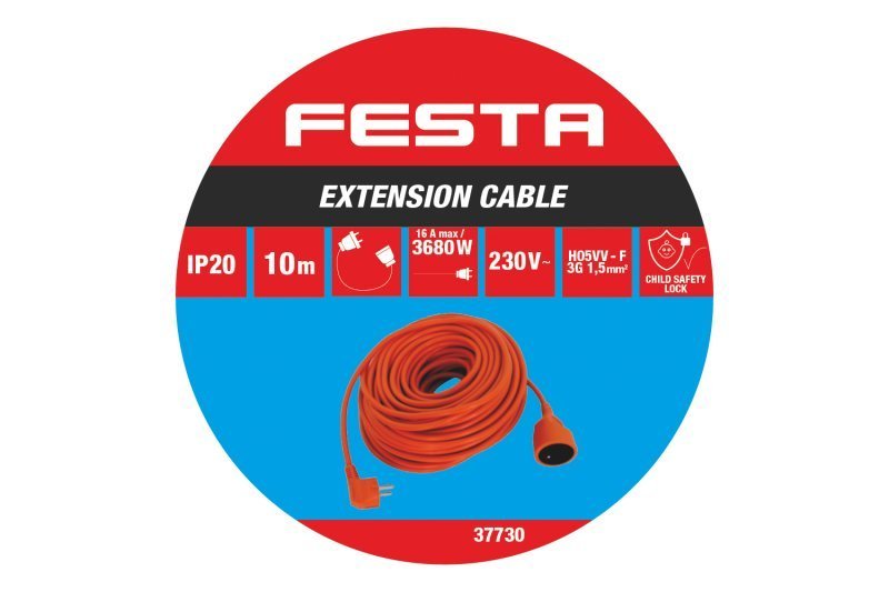 Kabel prodlužovací FESTA 3x1,5mm 10m 230V max.3680W IP20
