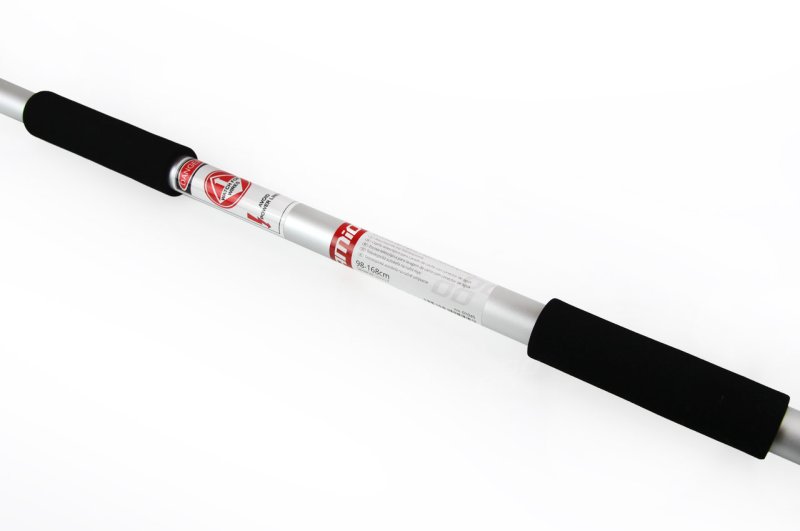 Pevný teleskopický kartáč s hliníkovou rukojetí, délkově nastavitelný od 98 do 168 cm.