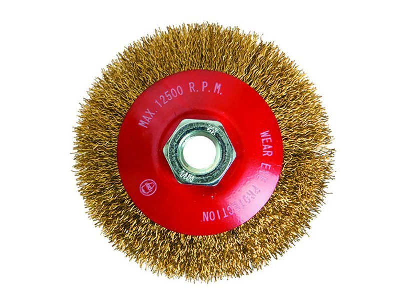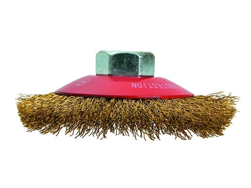 Kartáč miskový s mosaznými vlnitými drátky, uchycení M14, miskový, vhodné pro nerezové materiály. Instruktážní video