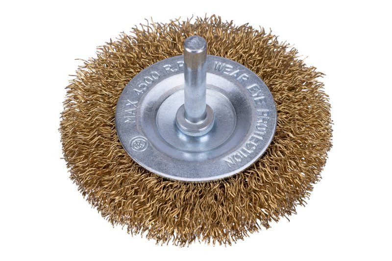 rotační kartáč s vlnitým pomosazeným drátem 0,3 mm, radiální provedení se stopkou