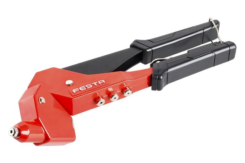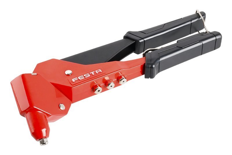 nýtovací kleště FESTA s otočnou hlavou 360 ° Cr - MO čelisti - pro všechny druhy trhacích nýtů robustní ocelový rám, skvělý přenos síly na čelisti v jakékoli nastavené poloze, plastové rukojeti pro nýty: 2,4 - 3,2 - 4,0 - 4,8 mm pro nýtování v hůře přístupných místech hmotnost 620g Instruktážní video