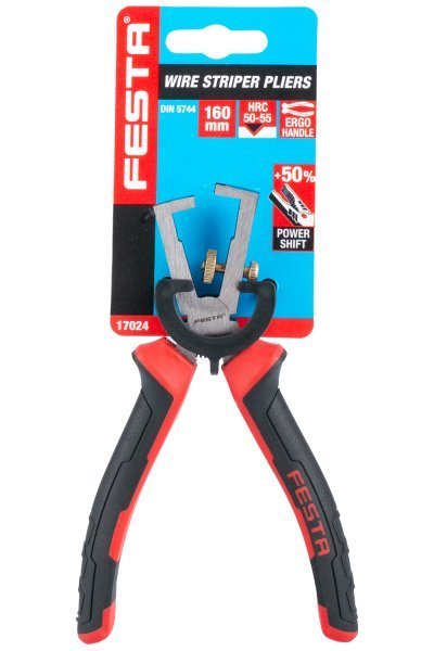 Odizolovávací kleště FESTA 160mm, stavitelné čelisti pro snadné odizolovávání vodičů, ergonomické rukojeti s certifikací pro práci do 1000 V, výrobce je držitelem certifikátu ISO 9001, blistr.