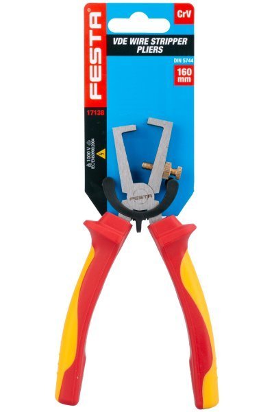 Kleště VDE odizolovávací 160 mm FESTA mají certifikaci elektro VDE 1000 V, IEC/EN 60900-2004, kombinace polypropylenu a pryže na ergonomicky tvarovaných ručkách zaručuje výborné antiskluzové vlastnosti a dobrou odolnost vůči mazadlům a chemikáliím. Uchopovací čelisti obzvláště odolné proti opotřebení, chromvanadová vysoce výkonná ocel. Hmotnost 0,283 kg.