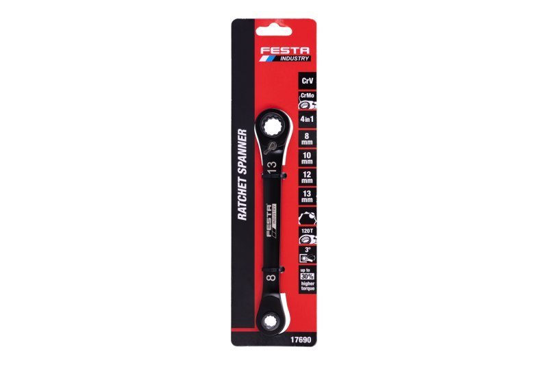 Klíč ráčnový FESTA INDUSTRY 4 v 1 CrV-CrMo 8/10, 12/13 120T