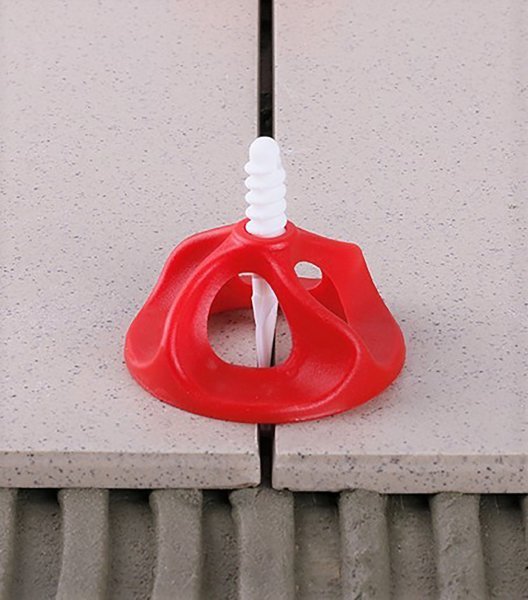 nivelační klobouček s vnitřním závitem - pro snadnou nivelaci dlažby - obkladů, bez použití speciálního nářadí pro spony distanční se závitem 37131, 37132 odolný, pružný a pevný plast, speciální tvar lamel kloboučku zajišťuje přesné a pohodlné utažení spony pro výškové vyrovnání dlaždic ve spáře opakovaně použitelné, po zaschnutí lepidla (min. 24 hod - nebo dle údajů výrobce lepidla) se klobouček se sponou odstraní úderem palice nebo ukopnutím Instruktážní video