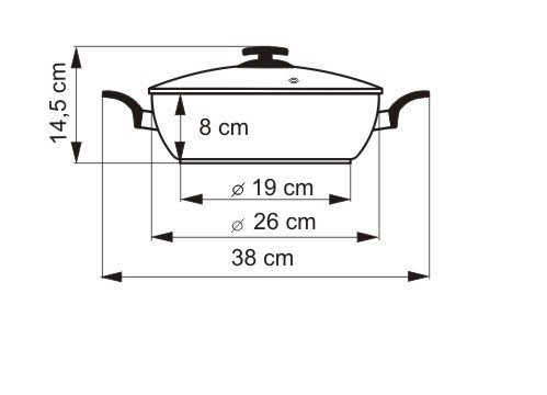 - průměr 26 cm, objem 3.4 l, vysoká 8 cm