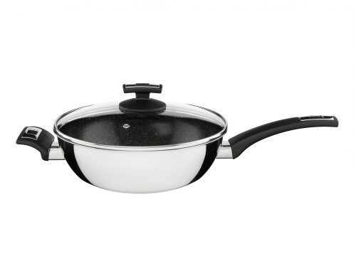 - pánev má široký odlévací okraj pro snadné přelévání bez ukapávání a zašpinění nádoby