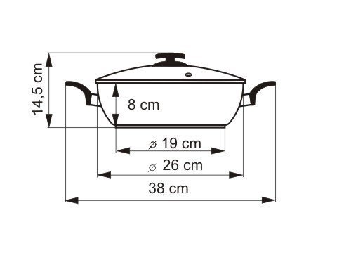 - průměr 26cm, objem 3.5l, vysoká 8 cm