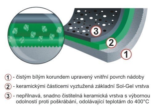- používáme odolný keramický povrch bez obsahu PTFE a PFOA od švýcarské firmy ILAG