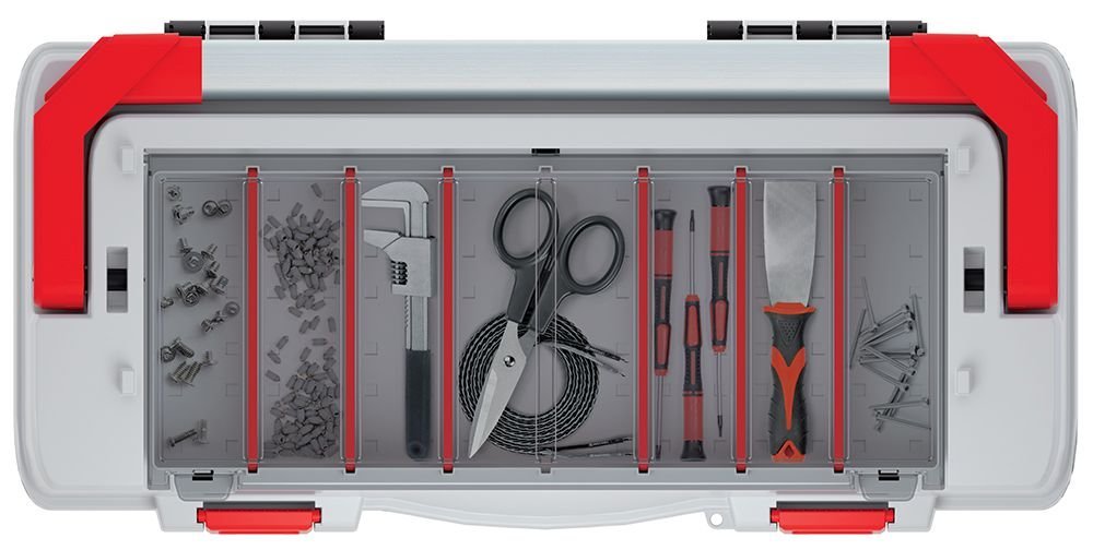 Kufr na nářadí s kov. držadlem EVO 476x260x256 mm (přepážky) - barva: červená