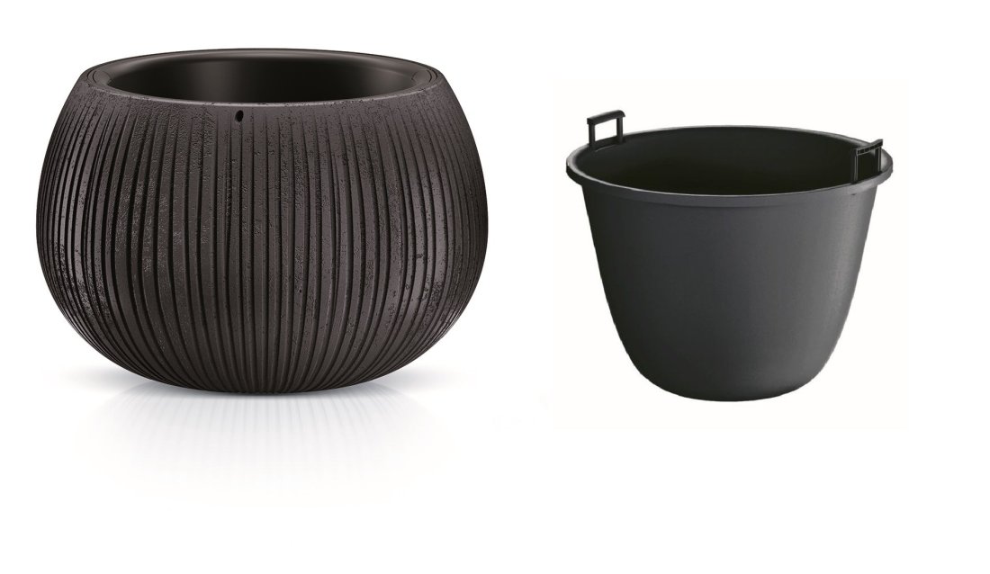 Květináč BETON BOWL s vkladem 18 cm - barva: černá