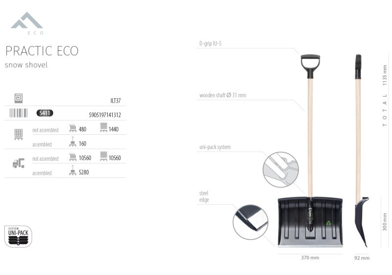 Lopata na sníh Praktic Eco černá je lehká a praktická lopata na odklízení sněhu. Je vyrobena z kvalitního dřeva s plastovým držadlem a násadou, která je opatřena ocelovou hranou pro snadnější rozbíjení zmrzlého ledu a sněhu. Lopata je vyrobena až do -18°c.