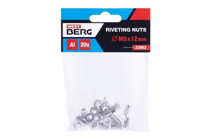 Hliníková nýtovací matice s metrickým závitem M5, délka 12 mm, počet v balení 20 ks, vroubkovaný límec pro větší pevnost spoje. Aplikujte pomocí - nýtovacích kleští FESTA číslo 24035.