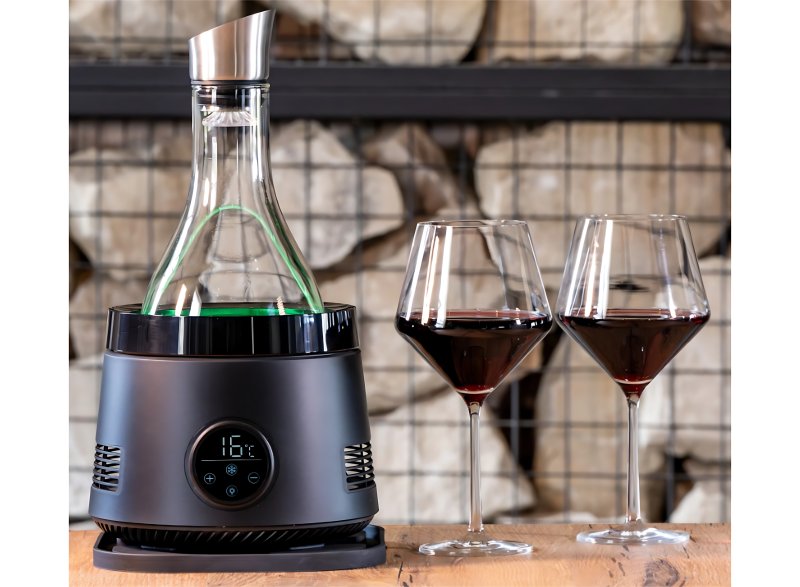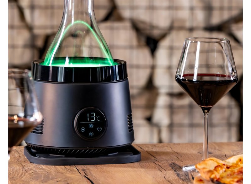 Stačí víno předem vychladit, vložit do nádoby, nastavit požadovanou teplotu a už jen relaxovat. Intuitivní dotykové ovládání, ambientní LED osvětlení a nízká spotřeba energie (60 W) dělají z tohoto zařízení ideální doplněk pro každého milovníka vína.