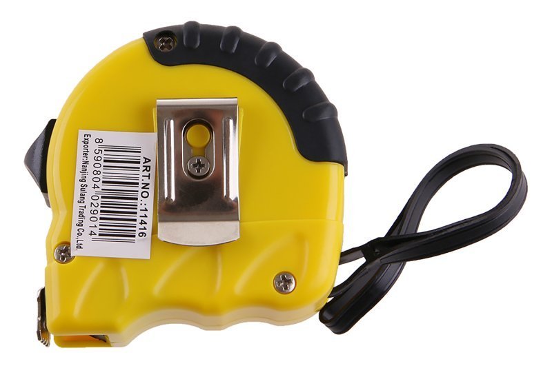 svinovací metr se stupnicí v cm a inch kalená páska, dělená stupnice na pásce metrická i palcová, poutko, klip na opasek