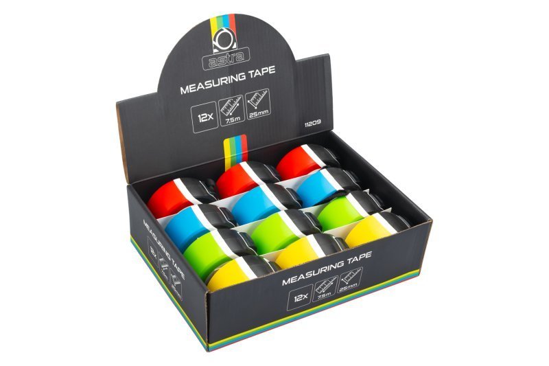 metr svinovací v prodejním boxu - provedení v moderních pastelových barvách