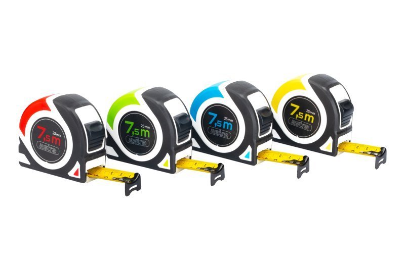 dvoukomponentní pouzdro metru - kvalitní plast v kombinaci s gumou - ochrana proti rozbití při pádu, poutko, klip na opasek