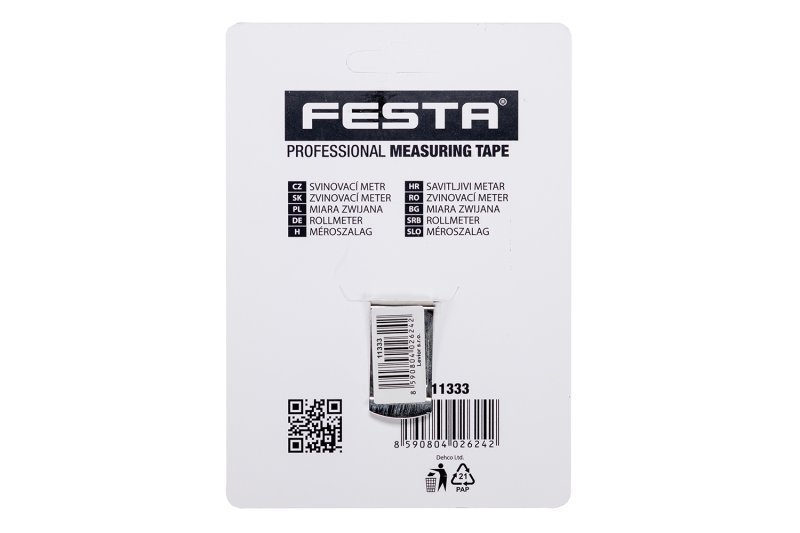 svinovací metr s automatickou brzdou kalená páska, dobře čitelná stupnice, CE certifikát - metr vhodný ke kalibraci pouzdro metru vyrobeno z ABS plastu s gumovou ochranou - vyšší odolnost proti poškození a lepší stabilita při manipulaci automatická brzda drží pásku okamžitě připravenou k měření, k navinutí pásky dojde po stisku tlačítka háček s plovoucím uchycením pro vnitřní i vnější měření, klip na opasek