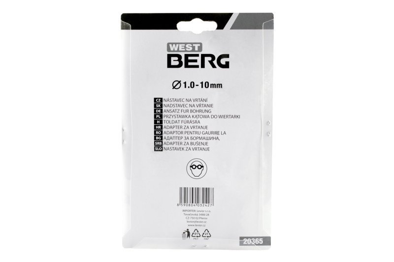 Nástavec na vrtačku pro vrtání pod úhlem 90°, prům. 1,5-10mm, stopky 10mm, max.upínací sklíčidla 10mm. Tělo ABS plast, převodové soukolí kov. Převodový poměr 1:1.