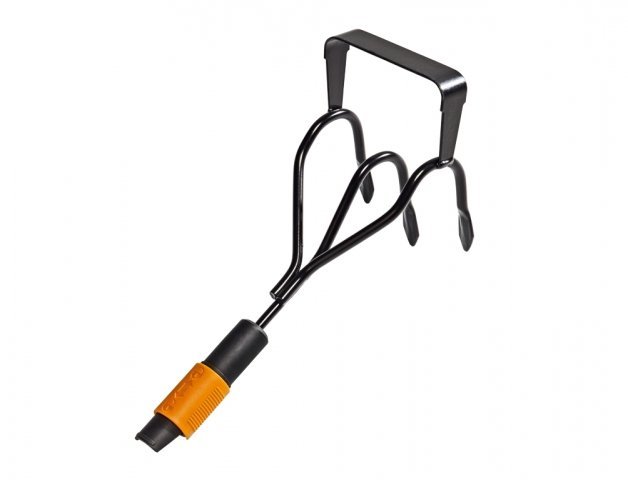 Dvojitý nástroj ke kultivaci, provzdušnění půdy a pro přípravu záhonů. Hroty a motyčka jsou vyrobeny z kalené karbonové oceli. Systém QuikFit umožňuje spojení různého zahradního nářadí s jedinou násadou. Šířka: 125 mm, délka: 305 mm, hmotnost: 507 g. Původní Fiskars číslo: 136512.