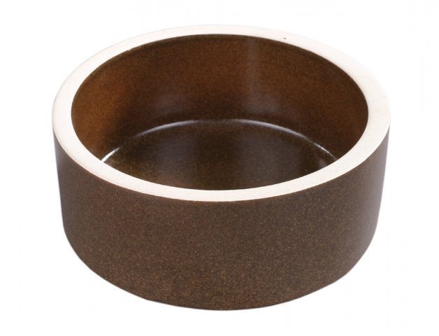 Keramické hnědí krmítko ve tvaru válce vhodné pro napájení a krmení hlodavců a jiných drobných zvířat. Rozměry: d. 15,7 x v. 5,3cm.