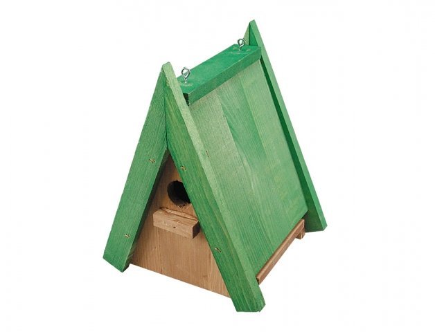 Sýkorník je určen zejména pro malé druhy sýkor - koňadru, modřinku, parukářku a úhelníčka. Budka je ze dřeva se zelenou střechou ze šindele a dřevěnými taškami. Má odnímatelný zadní díl pro snadné vyčištění budky. Rozměry: 24 x 18,5 x 16,5 cm.