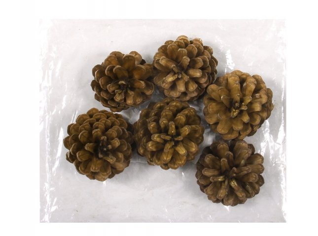 Šišky z borovice vhodné k aranžování a dekoraci. Velikost: 5-7 cm. Balení: 6 ks.