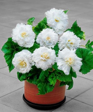 Begónie velkokvětá pochází z Jižní Ameriky a je vhodná především k osázení truhlíků, květinových mís, ale i záhonů. Jedná se o plnokvěté odrůdy tvořící květy 10–15 cm veliké. Pro brzké kvetení se doporučuje předpěstování. Koncem ledna namočíme asi na 30 min. miskovité hlízy do vlažné vody a vkládáme 2 cm pod povrch teplého, vlhkého a na humus bohatého substrátu. Mladé rostliny jsou citlivé na mráz i přímé sluneční záření, a proto je přistíníme. Soustavné kvetení si zajistíme odstraňováním odkvetlých květů, velké květy odstraňováním postranních poupat a starších listů. Hlízy sklízíme v polovině října. Po prvních mrazech odřízneme stonky cca 2 cm nad hlízou a po zaschnutí opatrně odstraníme kořínky. Skladujeme na chladném místě v rašelině tak, aby hlízy nezaschly. Rostliny nejsou odolné proti mrazu.