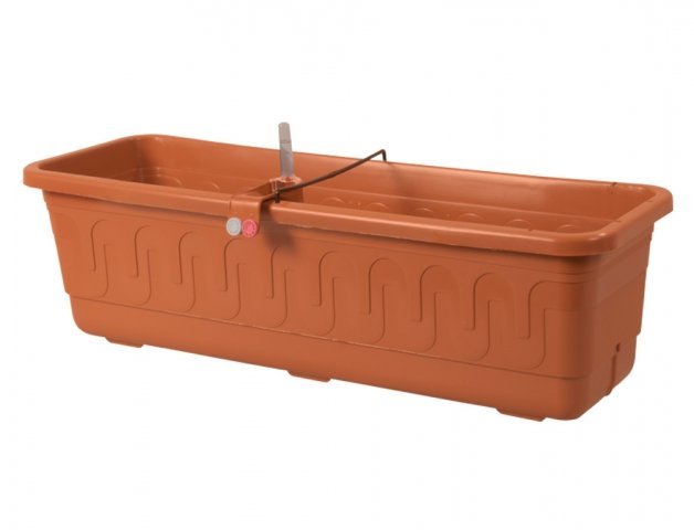 Samozavlažovací plastový truhlík v bezknotovém provedení a s volitelnými otvory pro odpad. Má 2 ergonomické barevné datumovky pro zaznamenávání intervalů zalévání a hnojení. Je vybaven otvory v roštu pro vhodné umístění napájecího dílu s barevně značenými zátkami. Má dvoukomorové řešení zajišťující nepřetržité měření hladiny vody, a to i při nalévání. Rozměrné zásobníky na vodu zajišťují dlouhodobé dodávání vody. Nalévací otvor je vhodně tvarovaný pro snadné měření vody. Šířka: 99 cm, výška: 17 cm, hloubka: 20 cm.