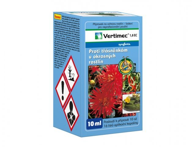 Vertimec je postřikový insekticidní a akaricidní přípravek ve formě emulgovatelného koncentrátu. Je určený k hubení svilušek, vrtalek (Liriomyza spp.) a třásněnek včetně třásněnky západní v okrasných rostlinách, okurce, paprice a rajčeti a proti roztočíku jahodníkovému v jahodách. Abamectin, účinná látka přípravku Vertimec 1.8 EC hubí svilušky, vrtalky, třásněnky včetně třásněnky západní a další hmyz jako kontaktní a žaludeční jed. Abamectin má omezené systemické působení, avšak vyznačuje se translaminárním pohybem.