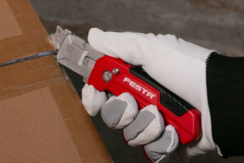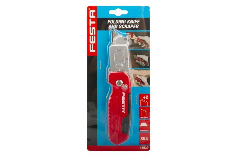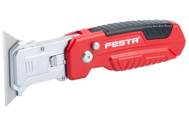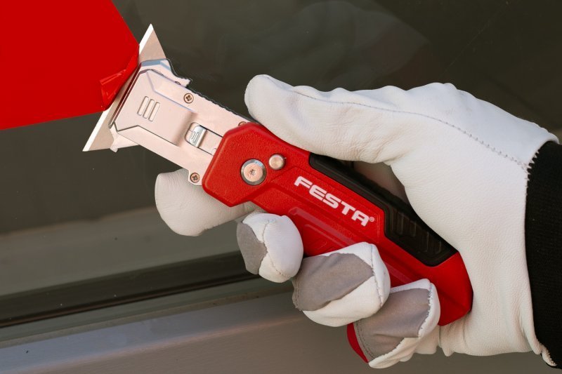 speciální konstrukce zavírací části umožňuje snadno přeměnit nůž na škrabku