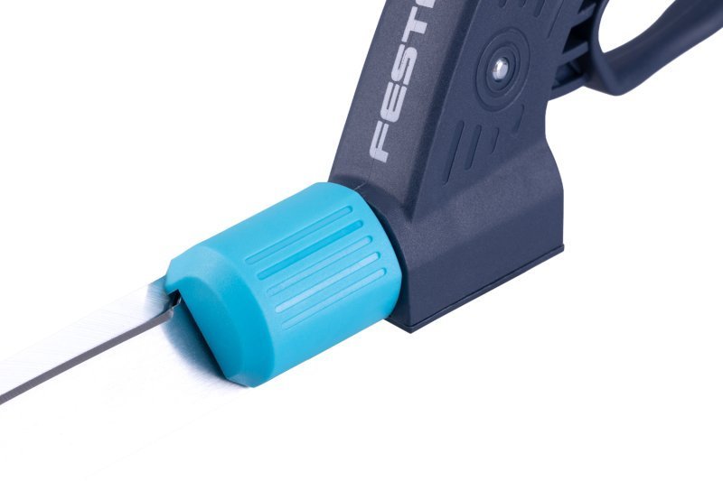 ergonomická rukojeť s ochranou, v rukojeti pojistka/aretace ostří v sevřeném stavu, díky použitým materiálům jsou nůžky lehké a zároveň odolné