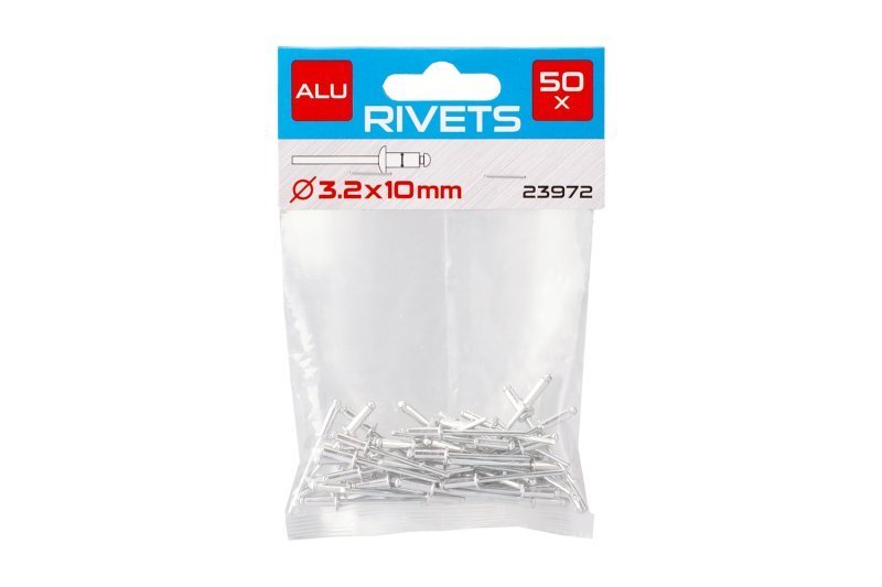 Klasické trhací slepé aluminiové nýty průměr 3,2 mm délka 10 mm v malém balení 50 kusů, vhodné pro malospotřebitele. Instruktážní video Instruktážní video