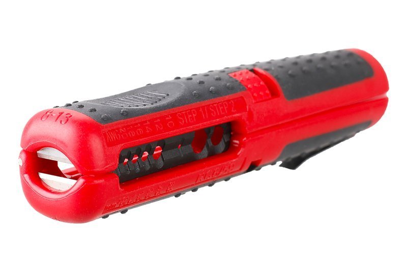 nástroj pro rychlé a profesionální odizolovávání různých druhů kabelů osří uzpůsobeno pro snadnou práci při odizolovávání kabelů bez poškození vodičů vhodné pro průměry 0.5, 1, 1.5, 2.5, 4, 6 mm a koaxiální kabely RG59 a RG6, NYM kabely 8 - 13 mm další břity pro příčné a podélné řezy ergonomický úchop s protikluzovým pogumováním, bezpečnostní pojistka proti samovolnému otevření, klip na kapsu Instruktážní video