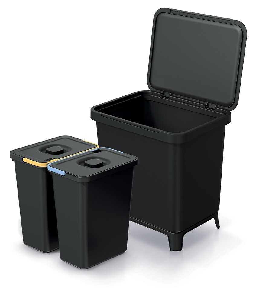 Odpadkový koš SYSTEMA - objem: 2x10 l, barva: recyklovaná černá