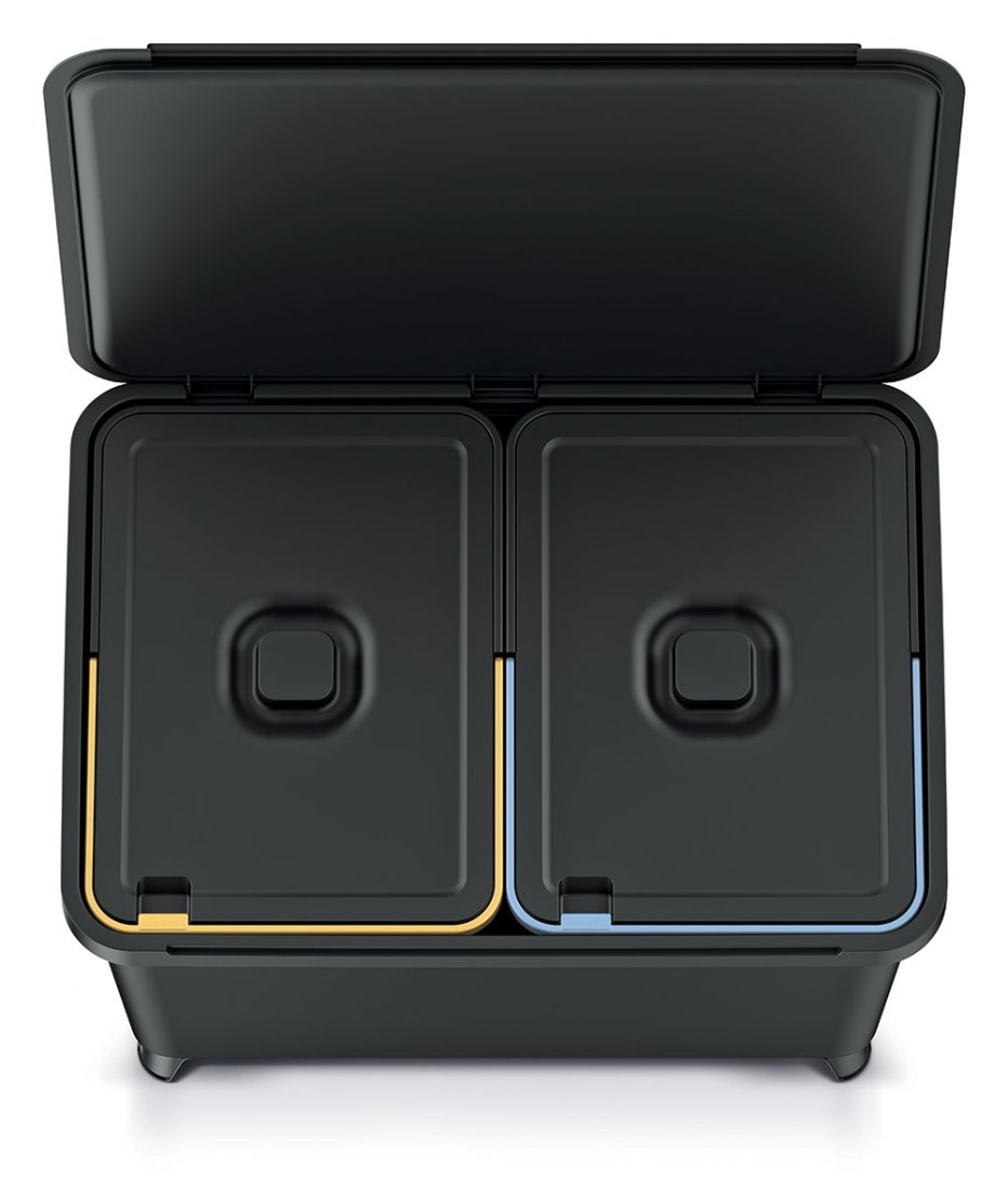 Odpadkový koš SYSTEMA - objem: 2x23 l, barva: recyklovaná černá
