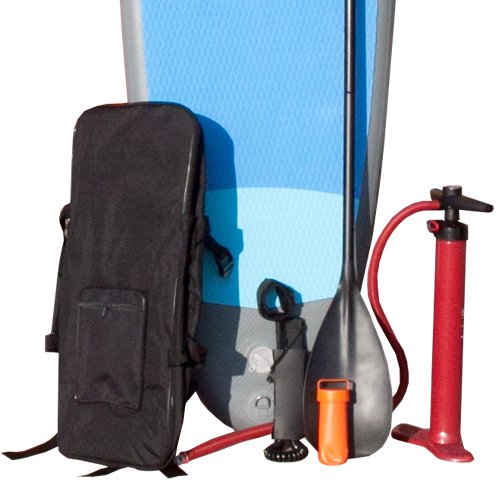 Tento All around SUP paddleboard je díky své stabilitě a ovladatelnosti vhodný pro začátečníky i pokročilé. Doporučujeme ho především do klidných a mírně tekoucích vod. Paddleboard je nafukovací, a proto jej lze velice snadno složit do auta a převážet. Všechny naše paddleboardy jsou vyrobeny z velice kvalitního a odolného 2-vrstvého PVC. Tento paddle board má na špici elastickou síťku, která se hodí pro upnutí menších předmětů nebo malého batůžku. Paddleboard je opatřen třemi ploutvemi z nichž dvě postranní jsou pevně připevněny a střední centrální ploutev je odnímatelná. Tento paddleboard je dále opatřen nerezovým D očkem pro uchycení bezpečnostní šňůry (leash), která zajistí, aby při pádu paddleboard neuplaval. Horní nášlapná strana je potažena protiskluzovým materiálem EVA. Součástí balení je hliníkové pádlo, které na vodě plave a na rozdíl od některých jiných značek se nepotopí. Pádlo je nastavitelné na délky 175-217cm a váží 1100 g. Dále je součástí balení ruční pumpa, bezpečnostní šňůra (leash), sada lepení pro rychlou opravu a batoh pro snadný transport sady.
