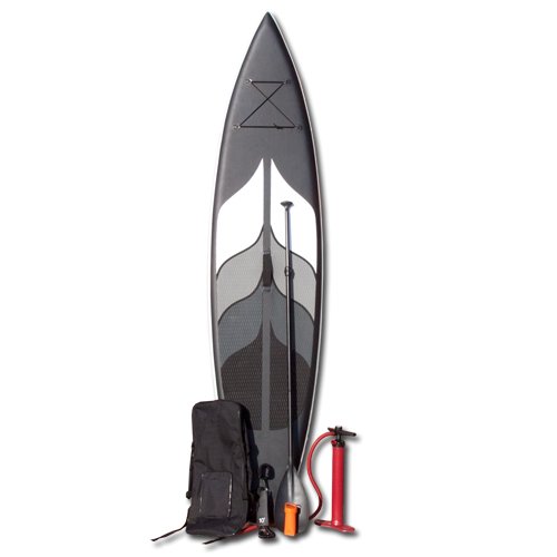 Tento Touring SUP paddleboard je díky svému tvaru a délce vhodný pro delší a rychlejší jízdu v především klidných a mírně tekoucích vodách. Tento paddleboard je doporučován mírně pokročilým až pokročilým jezdcům. Paddleboard je nafukovací, a proto jej lze velice snadno složit do auta a převážet. Všechny naše paddleboardy jsou vyrobeny z velice kvalitního a odolného 2-vrstvého PVC. Tento paddle board má na špici elastickou síťku, která se hodí pro upnutí drobných předmětů nebo malého batůžku. Paddleboard je opatřen třemi ploutvemi z nichž dvě postranní jsou pevně připevněny a střední centrální ploutev je odnímatelná. Tento paddleboard je dále opatřen nerezovým D očkem pro uchycení bezpečnostní šňůry (leash), která zajistí, aby při pádu paddleboard neuplaval. Horní nášlapná strana je potažena protiskluzovým materiálem EVA. Součástí balení je hliníkové pádlo, které na vodě plave a na rozdíl od některých jiných značek se nepotopí. Pádlo je nastavitelné na délky 175-217cm a váží 1100 g. Dále je součástí balení ruční pumpa, bezpečnostní šňůra (leash), sada lepení pro rychlou opravu a batoh pro snadný transport sady.